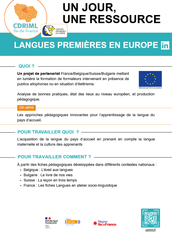 Cette fiche descriptive présente des approches pédagogiques innovantes développées dans le projet européen : » Langues premières en Europe ».