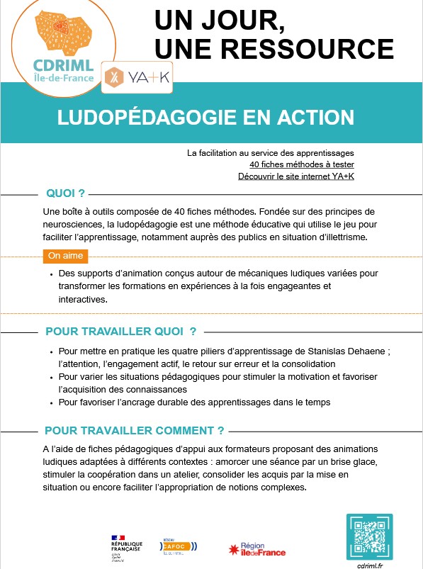 Cette fiche descriptive présente une boîte à outils sur le thème de la ludopédagogie, issue du site internet YA+K.